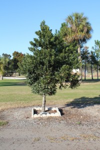 Down in that westerly direction, not quite as far as Alt. 19, there is a small tree. Its trunk is surrounded by white decorative blocks. We both have walked by that tree many times, but it was only recently that we noticed there was a small plaque in the ground at the tree’s base.